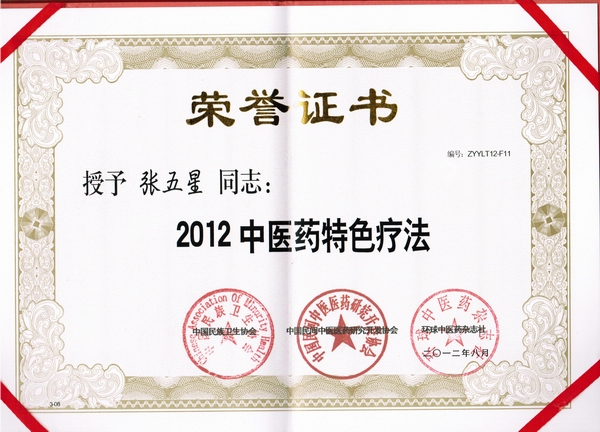 荣誉展示:中医中药副研究员张五星获得了中医药文化传播功勋奖